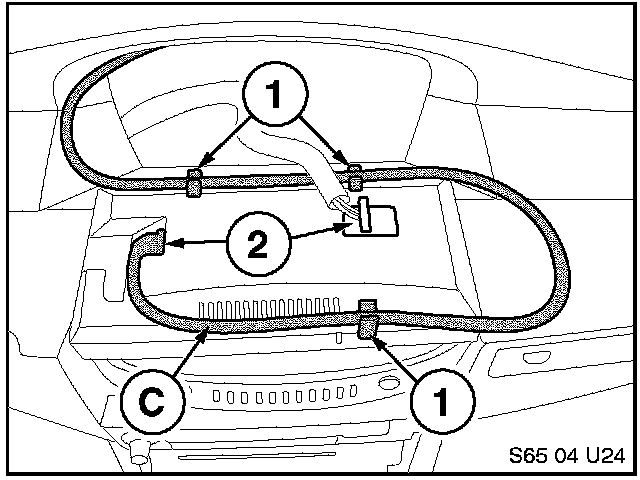 a. Wrap the protective strip E around the LVDS cable already present in the vehicle (1) and close using the adhesive strips.