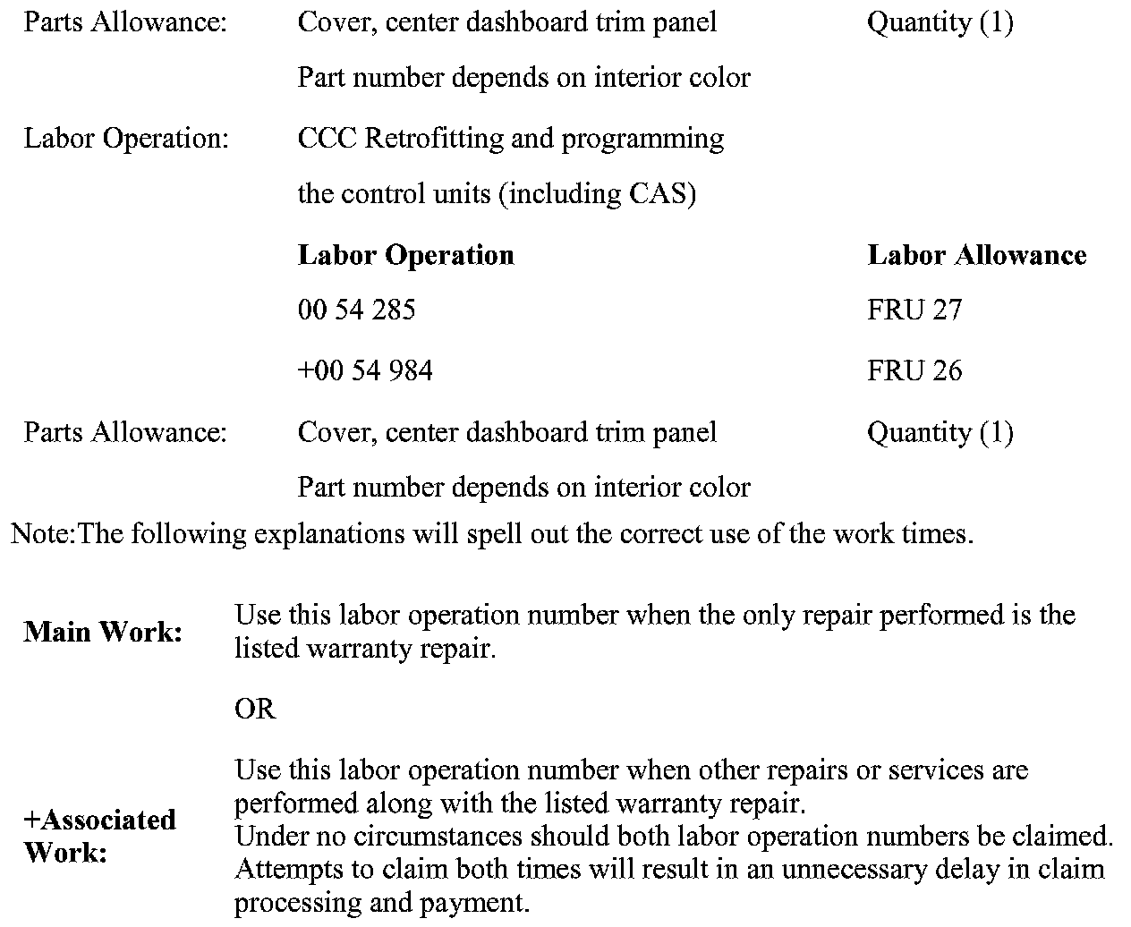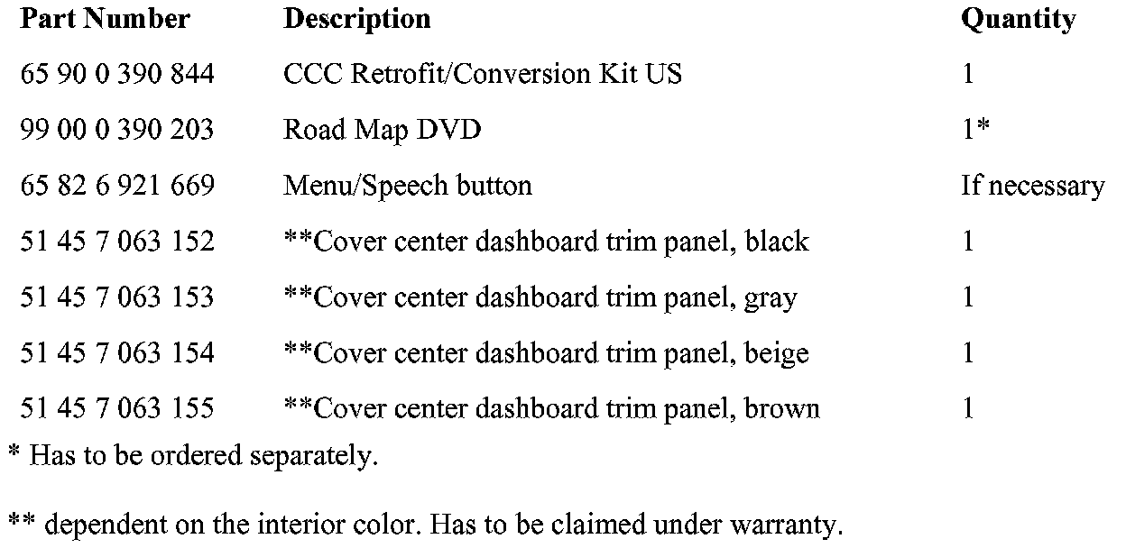 4. Install the CCC retrofit parts, please refer to the Installation Instruction P/N 01 29 0 394 108 in ASAP on the CenterNet website.