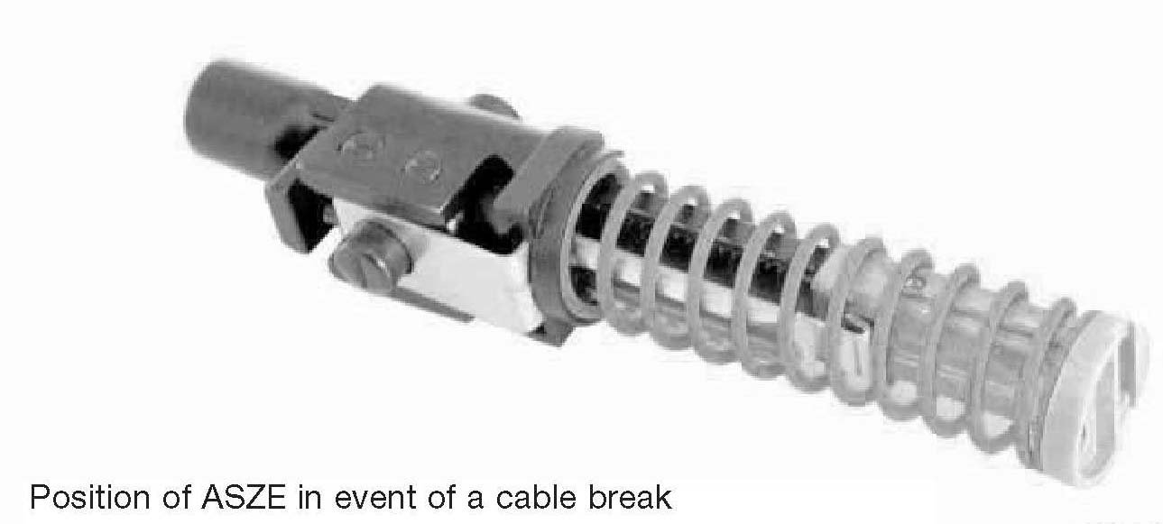 The function of the ASZE is to adjust the hand brake cables and compensate longitudinal variations and settling. It does not however adjust the wear on the duo servo brake. This must, as before, be adjusted at the expander lock in the brake. The function of the compensating element is to distribute the actuating force uniformly to both hand brake cables.