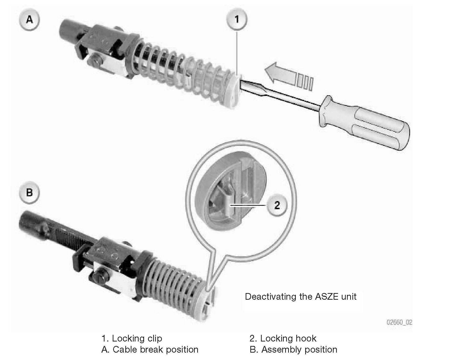 ^ The ASZE can be reactivated by levering the locking hook out of the locking clip.