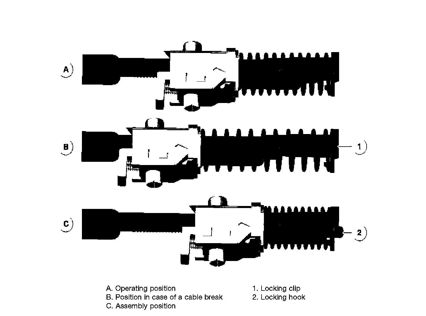 If there is a cable break, the automatic cable adjuster is in the most untensioned position.