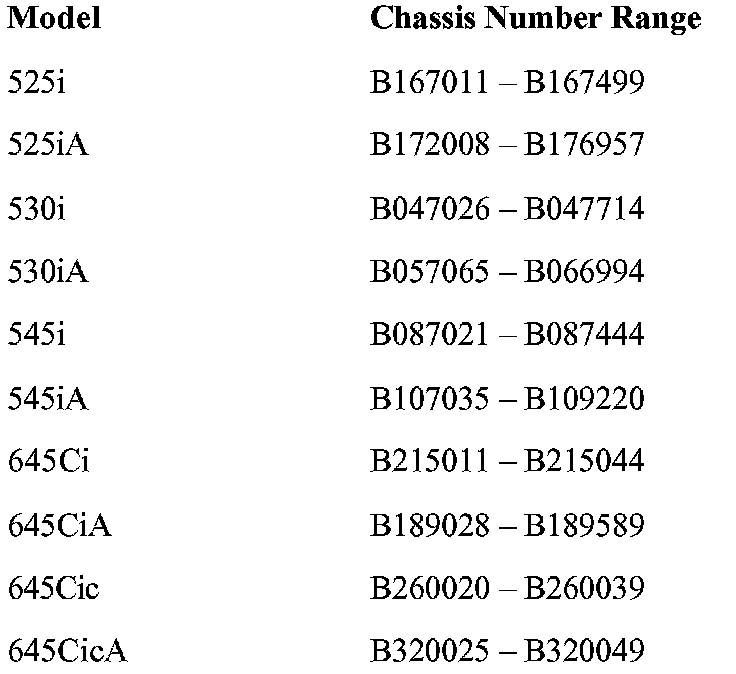 This Service Action involves 5 Series and 6 Series vehicles which were produced from 3 July, 2003 through 23 December, 2003.