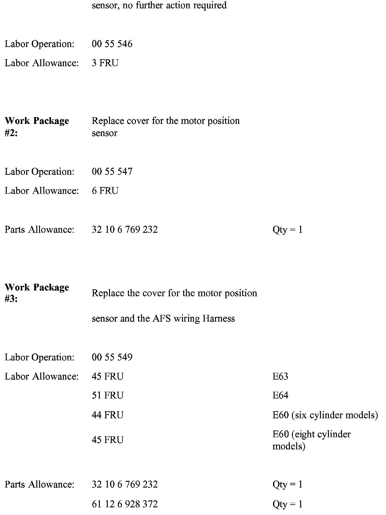 E60 (5 Series), E63/64 (6 Series) equipped with Active Front Steering (Option Code 217)