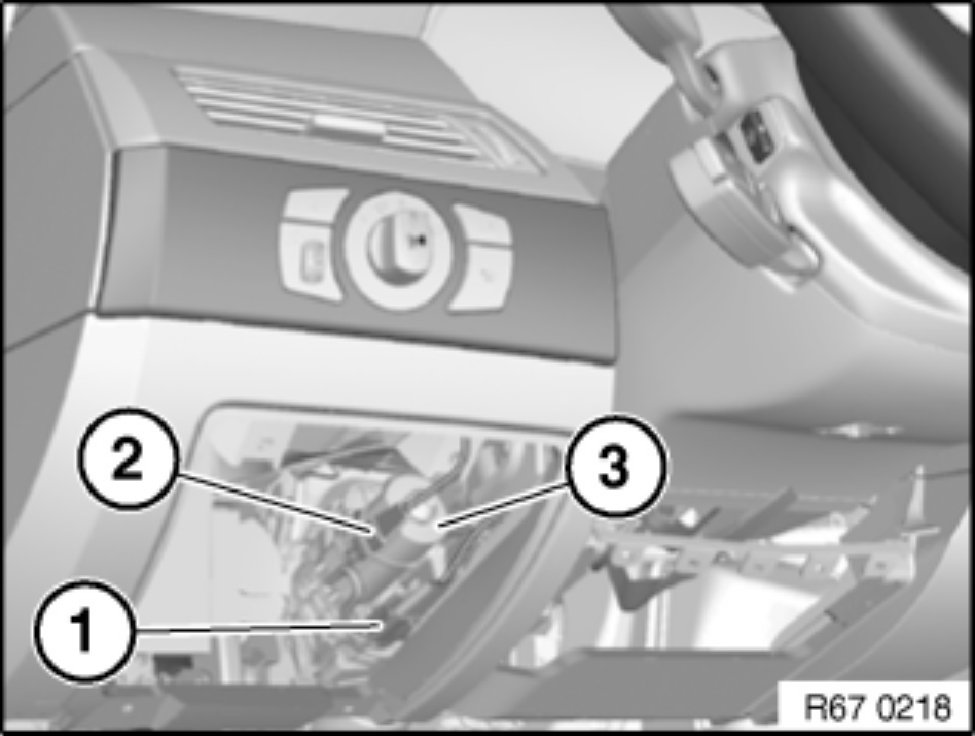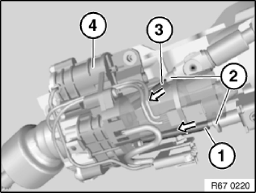 Unlock plug connections (1) and (2) of drive unit for electric steering column adjustment (3) and disconnect.