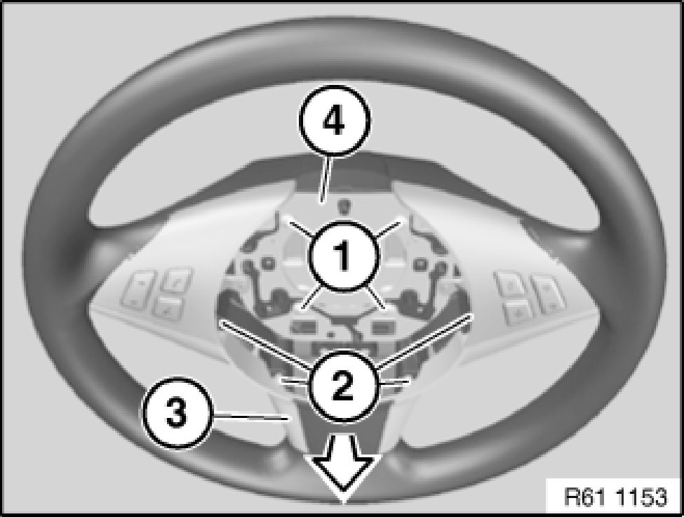 Disconnect associated plug connections and remove complete steering wheel retaining plate (4) with decorative trim (3).