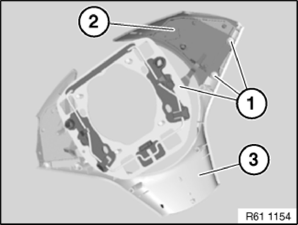 Release screws (1) and remove left multifunction steering wheel switch (2) from decorative trim (3).