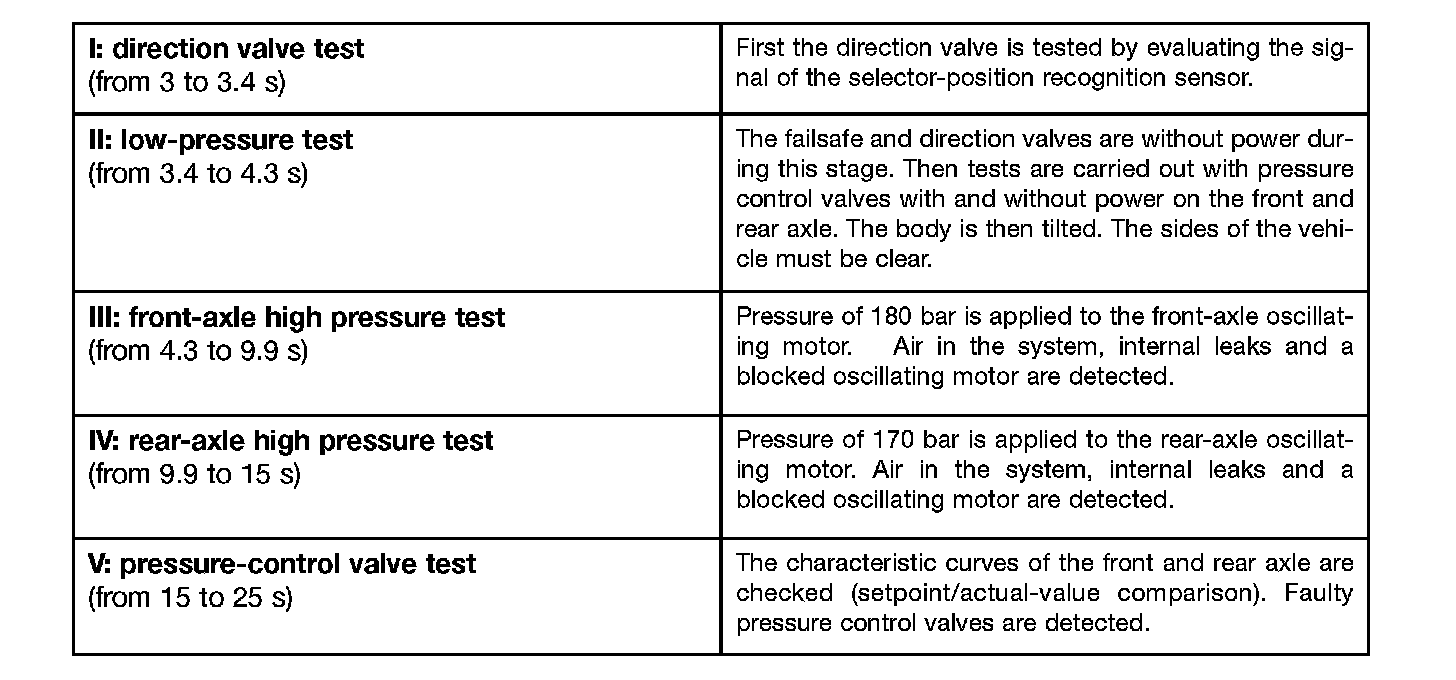 ^ Fault in the pressure buildup (pump, pressure limiting valve on the front axle)