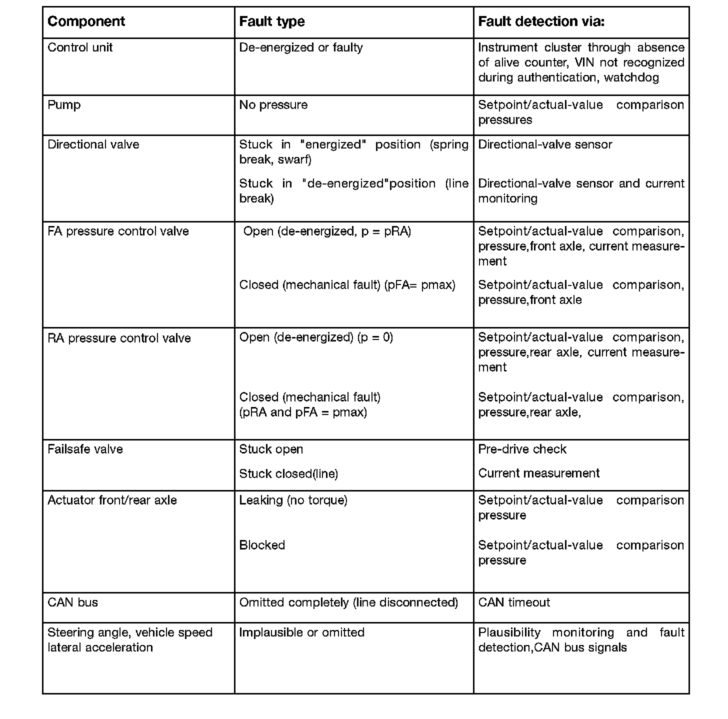 A lateral acceleration is calculated from the road speed and steering wheel angle from the CAN signals. This signal is faster than the actual lateral acceleration and compensates the time delay of the hydromechanical system. In the event of a fault in these two signals, the system responds with a delayed roll compensation. This arises only in the case of extremely quick steering maneuvers and is barely noticeable in normal cornering maneuvers.