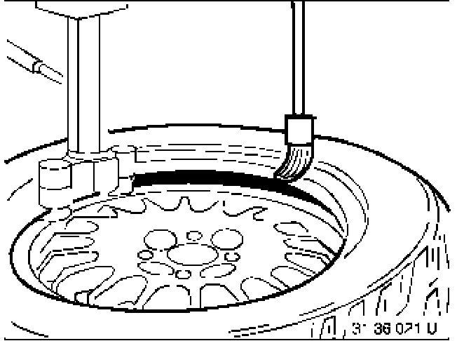 To prevent the pressing-off horn from damaging the RDC wheel electronics, do not rest the pressing-off horn on both rim sides in the area of the valve.