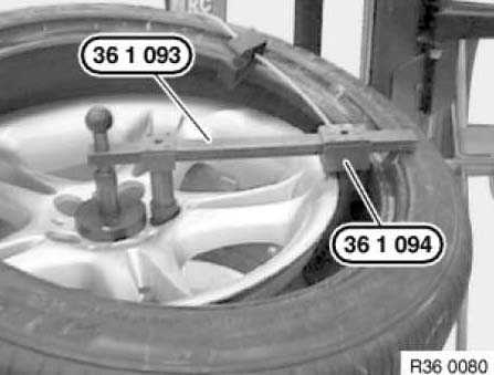 Position special tool 361094 and special tool 361095 as shown on rim flange.