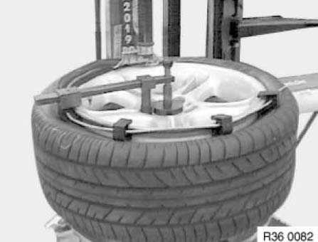 Force off inner side of wheel, inserting special tool 361098 between rim flange and tire bead in so doing.