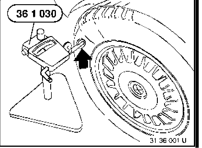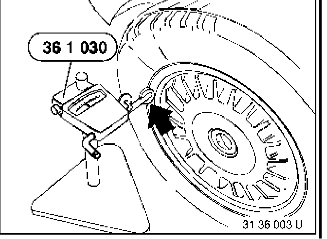 Check wheel with special tool 36 1 030 (measuring fixture) for radial runout.