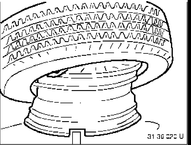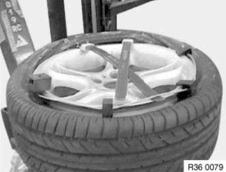 Force off inner side of wheel, inserting special tool 361098 between rim flange and tire bead in so doing.