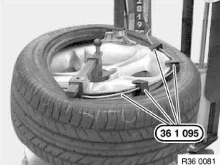 Position special tool 361094 and special tool 361095 as shown on rim flange.