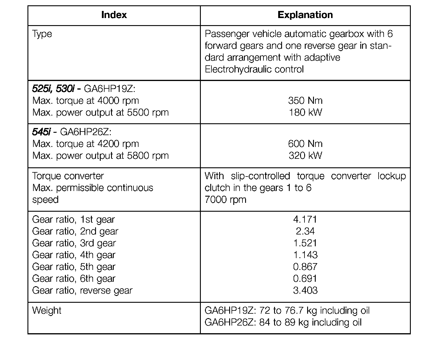 New System DescriptionBMW has developed an automatic six speed gearbox together with ZF (Zahnradfabrik Friedrichshafen), designated the GA6HP1 9Z / GA6HP26Z for the E60. It represents a further development of transmission technology in BMW automatic gearboxes. These gearboxes make an important contribution to the features of the E60.