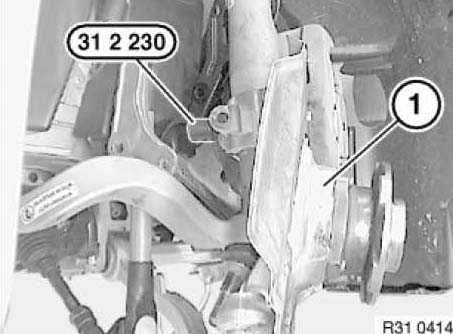 ^ Release control arm on front axle carrier and remove from swivel bearing