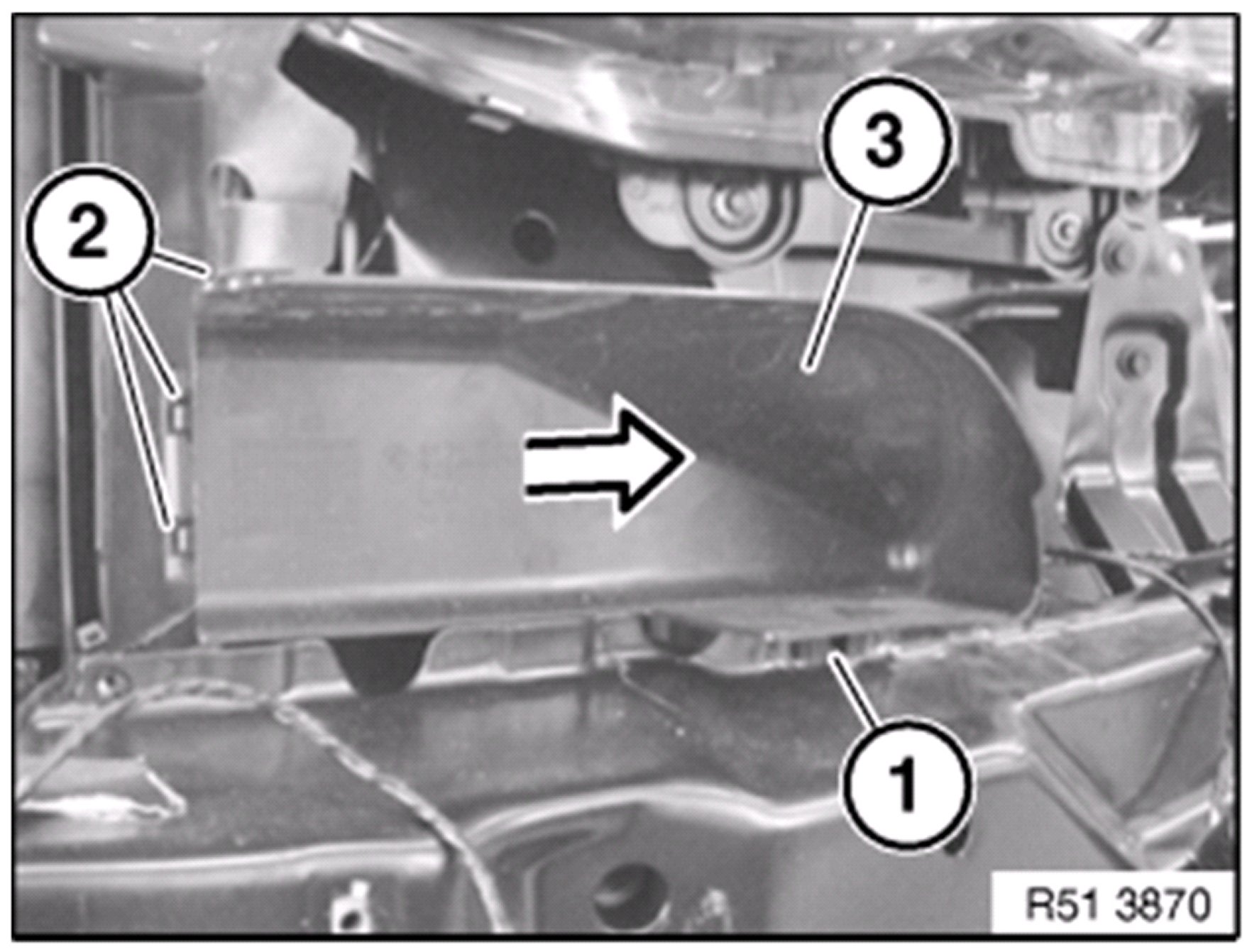 Unlock catches ( 2 ) and remove trim ( 3 ).