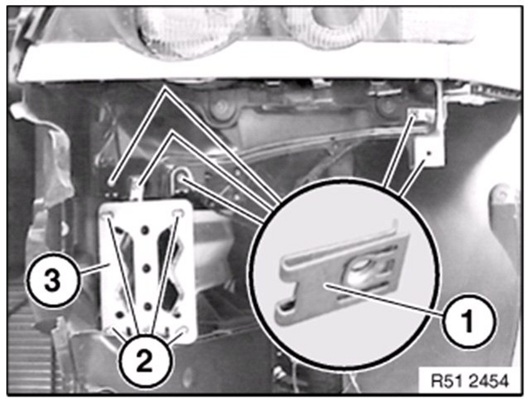 Release nut ( 3 ) and remove fanfare horns ( 2 ).