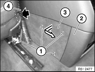 Unclip clips (1) on left/right with carpet (3) outwards from center console (2).