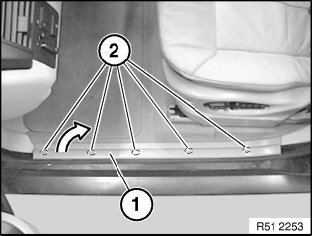Raise entrance cover strip (1) from front to rear and detach with clips (2) from floor plate.
