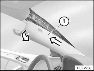 Unclip panel (1) at top and detach towards top.