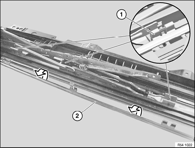If necessary, slide drive cable plate (1) fully forwards with a screwdriver (stop).