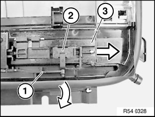 The guide (1) on the control rail (2) must run in the guide channel (3).