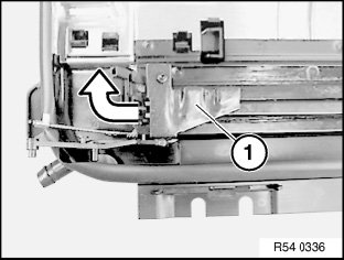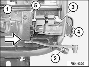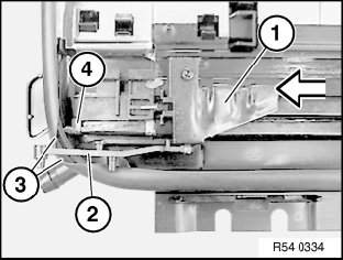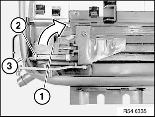 Slide control rail (1) backwards, lifting the linkage (2) and lifting lever (3) over the gasket (4).