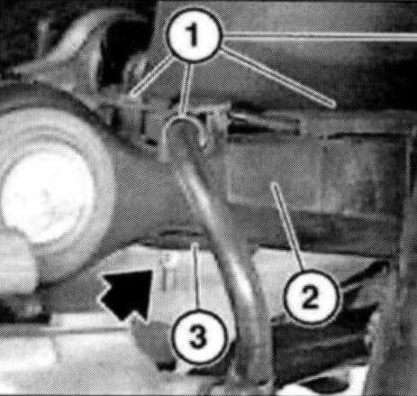 Apply pedal prop and depress brake pedal slightly. This prevents brake fluid from escaping from expansion tank after brake pipes have been disconnected (which would enable air to enter the braking system).