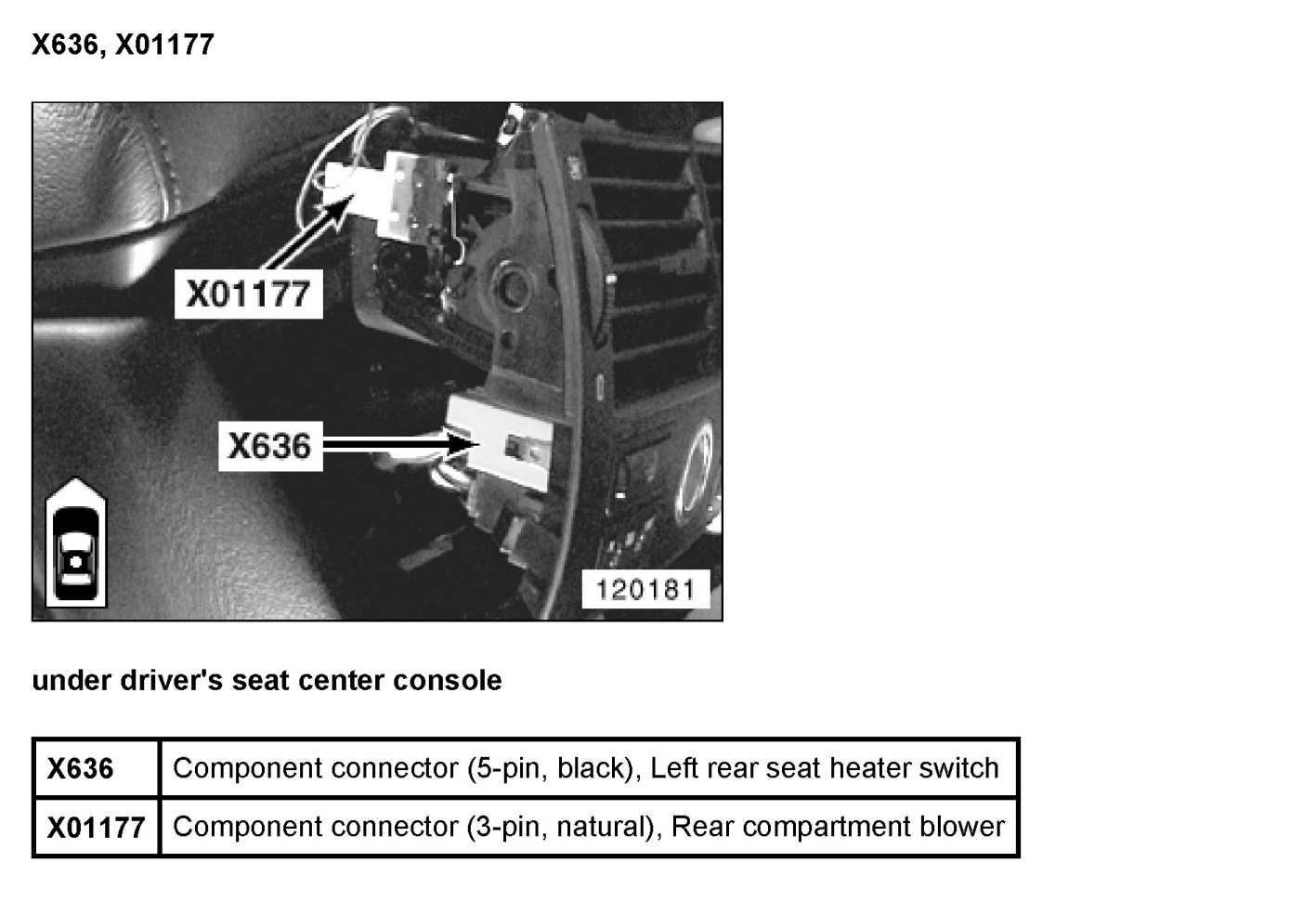 X636 Plug, Seat-Heating Switch, Rear Left