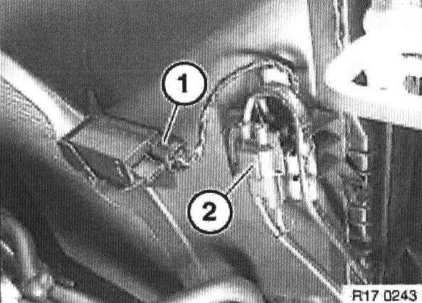 Intake pipe is secured in intake hood by means of two locking lugs (1).