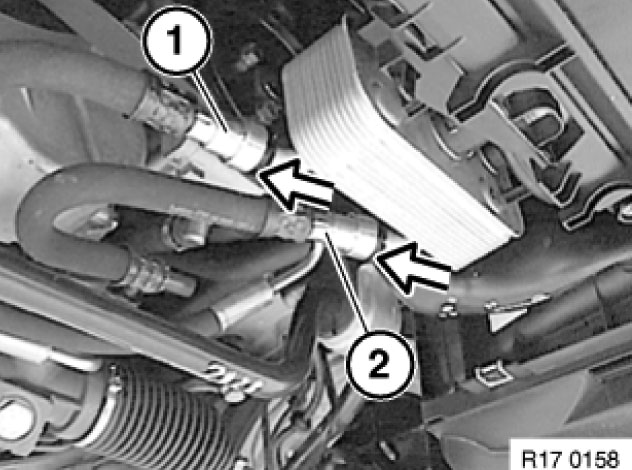 17 22 010 Removing and installing/replacing heat exchanger for automatic transmission (M62/M54/M57)Drain off and top up coolant.