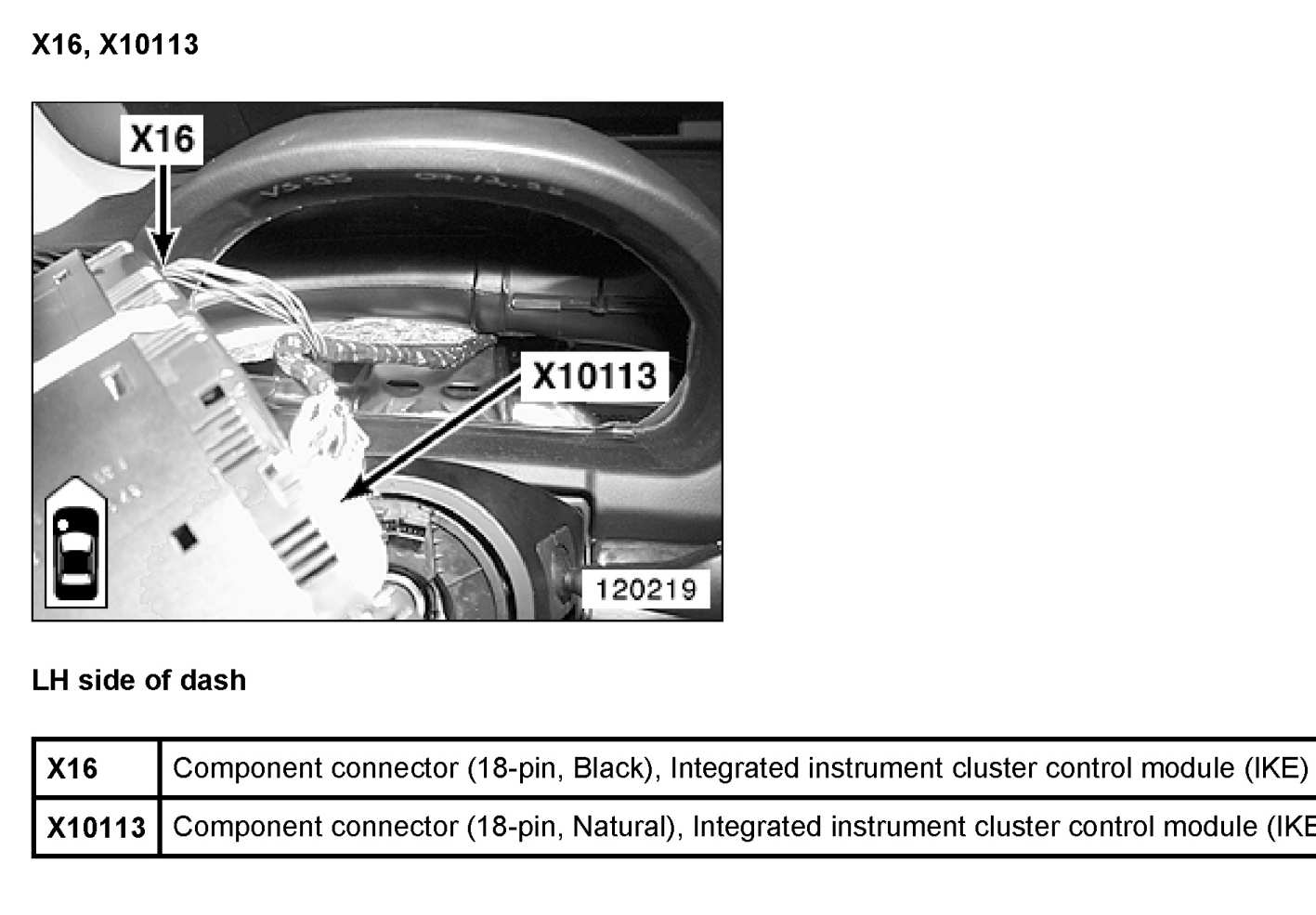 X16 Plug, Instrument Cluster