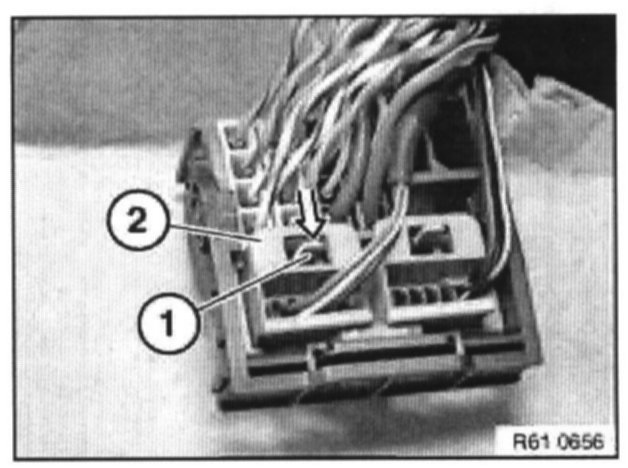 Press special tool 61 1 135 on inside of contact into contact carrier (2).