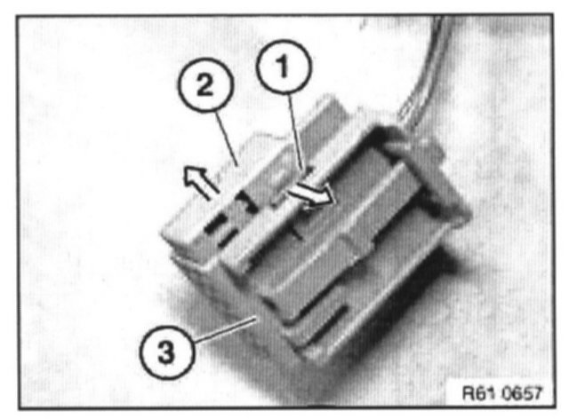 Press lock (1) in direction of arrow. Pull contact carrier (2) out of housing (3).