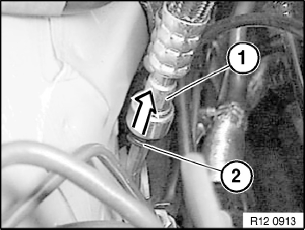 Press unlocking ring (2) upwards, keep pressed and detach fuel