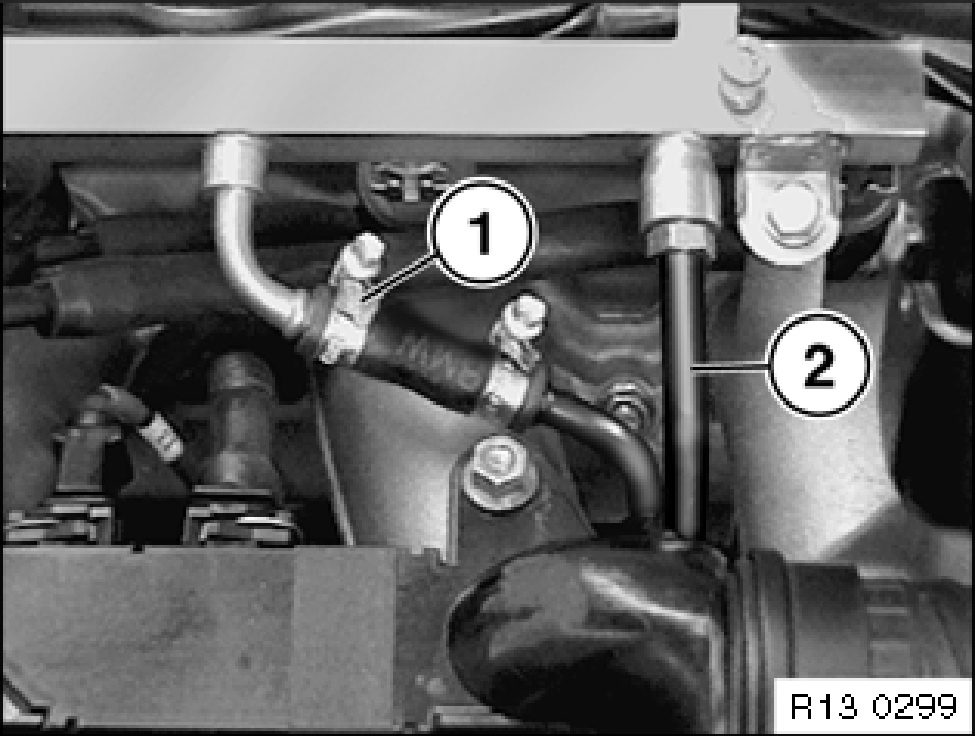 WARNING: The fuel in the fuel lines is under pressure (approx. 3-5 bar).