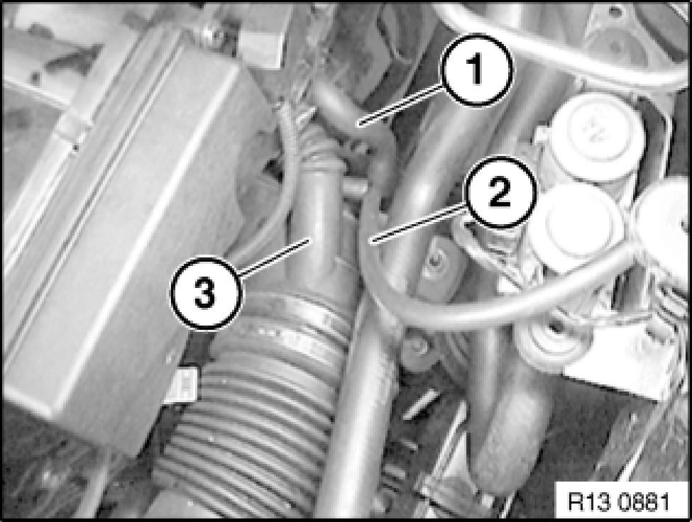 Detach vacuum lines (1 and 2) from intake hose (3).