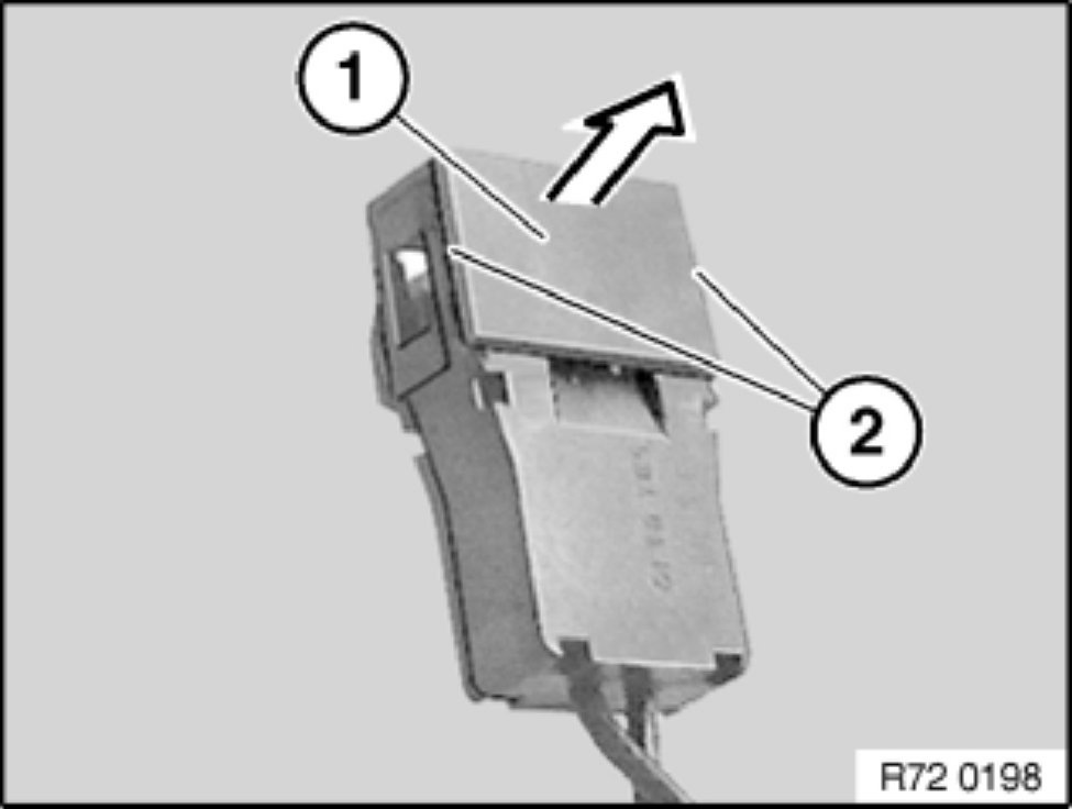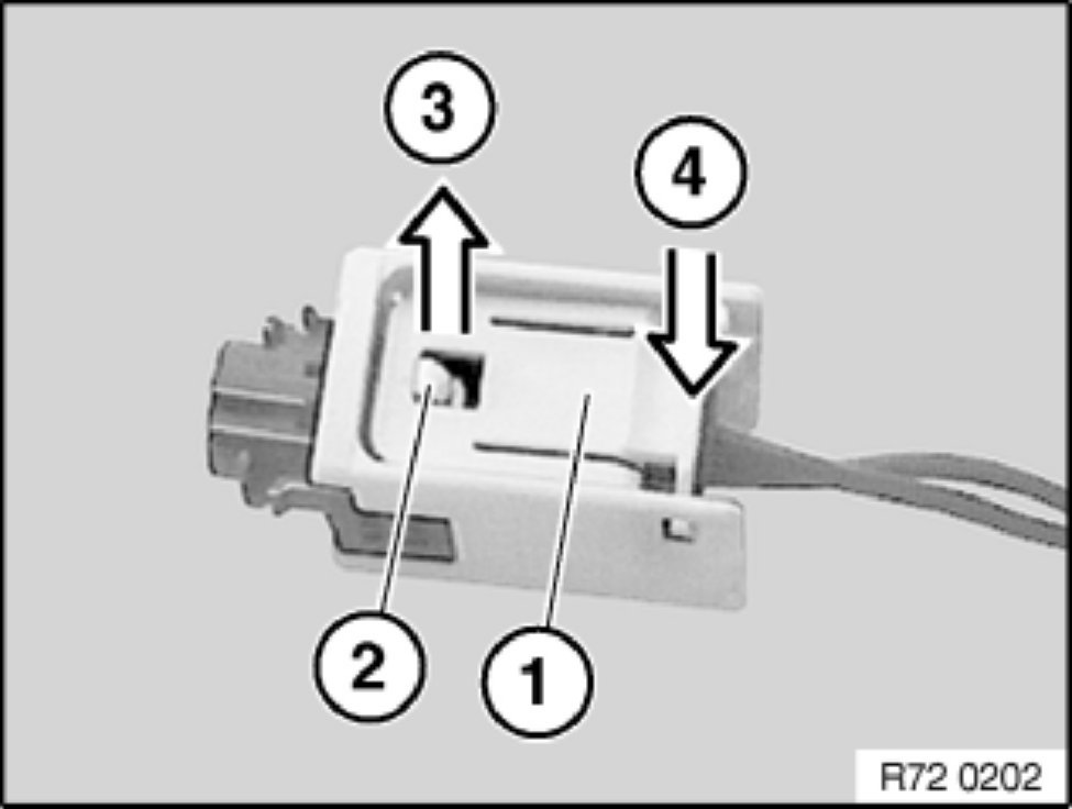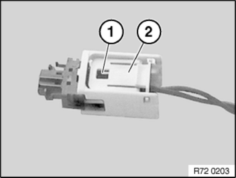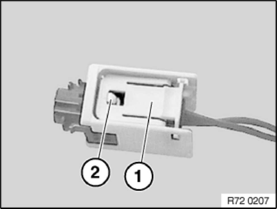 After the airbag plug connection for gas generator/airbag module is connected, check whether retaining lug (2) is visible in opening in locking/unlocking plate (1).
