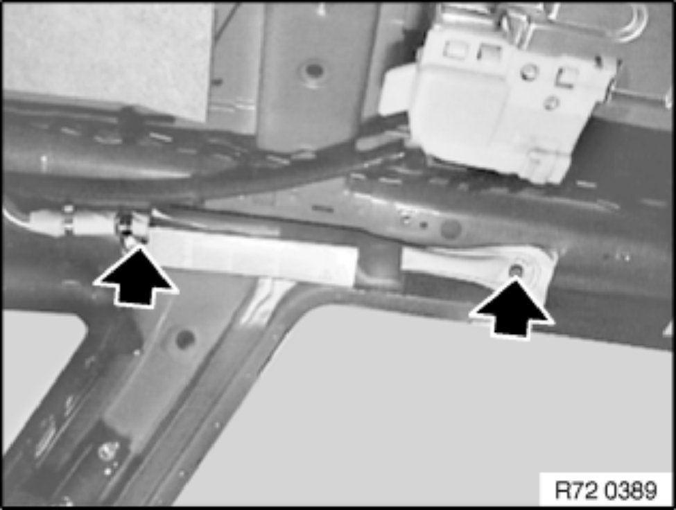 Tighten down screws on rear-compartment head airbag gas generator at roof cross-member.