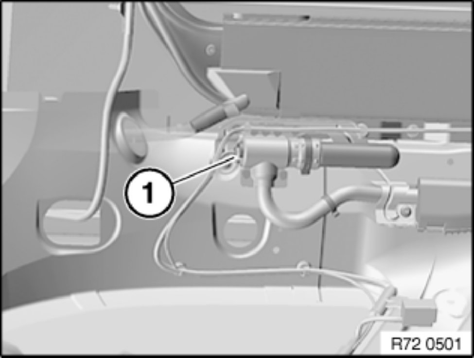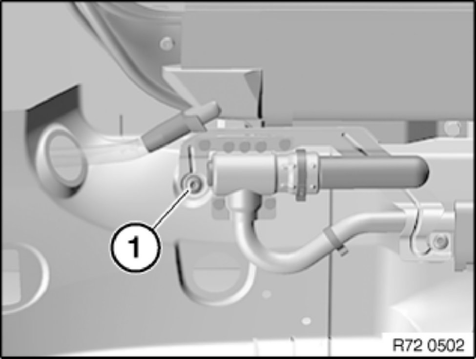 Release screw (1) on rear-compartment head airbag gas generator at roof cross-member.