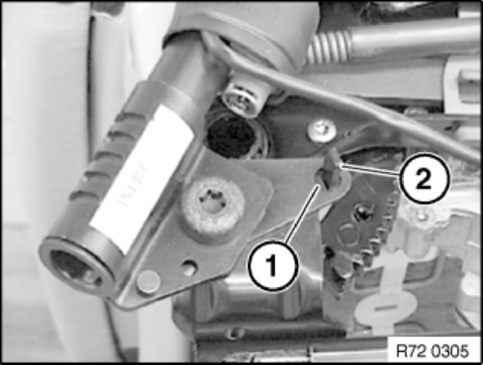 Release screws (1) simultaneously so that seatbelt height adjuster (2) does not tilt.