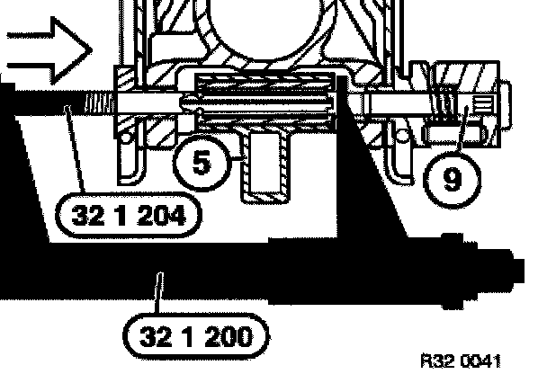 Drive in new bearing (1) with special tools 32 1 150 and 00 5 500.