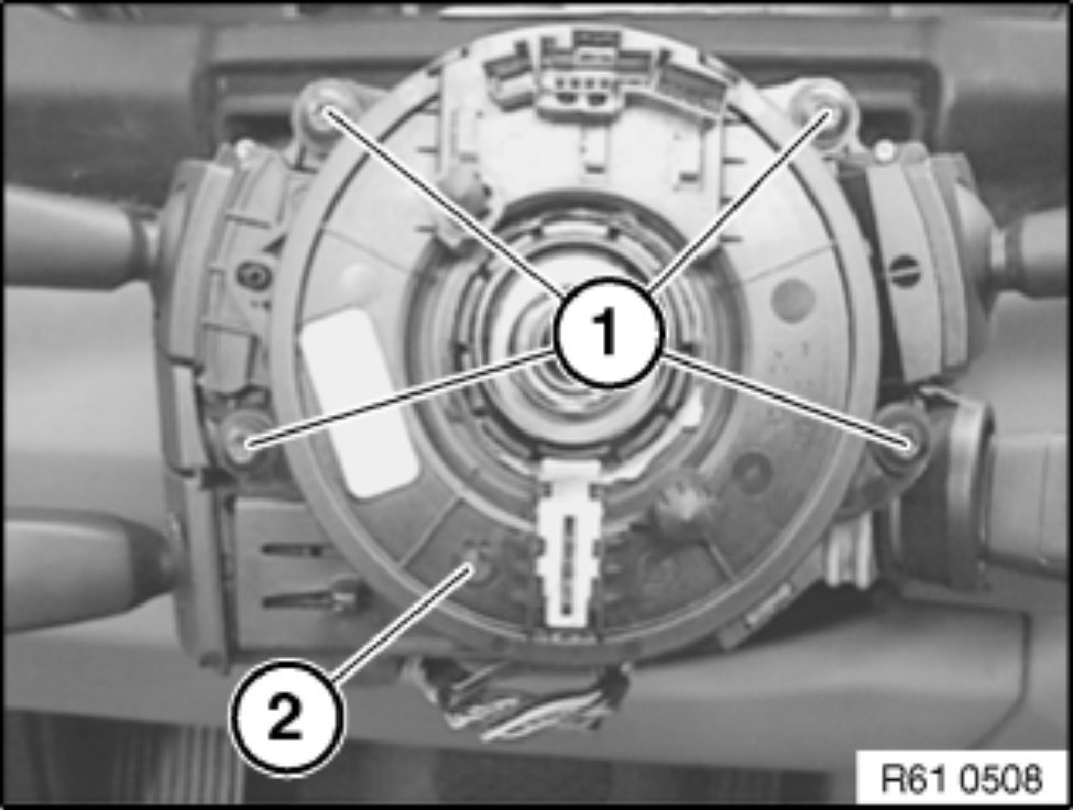 Do not under any circumstances twist the cover (1) out of its centered position against the fixture for the steering column stalk (2).