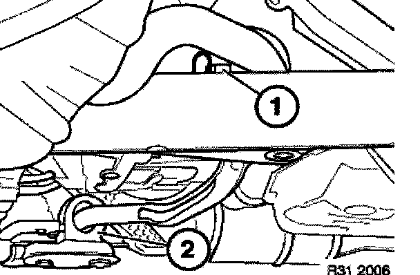 Remove both rubber mounts (1 - 2).