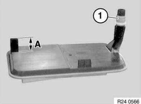 Pull off transmission fluid screen (1) towards bottom and remove.