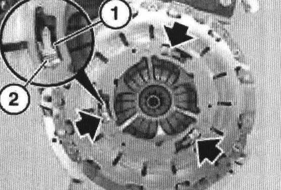 SAC clutch (1) must be secured by way of dowel pins (2).