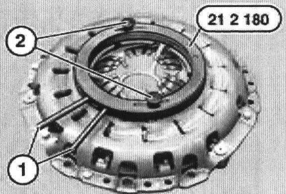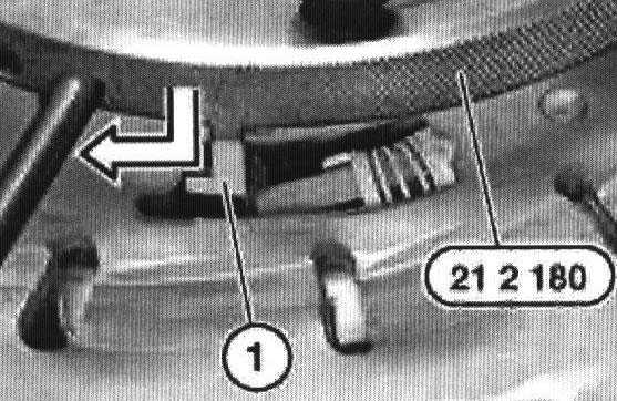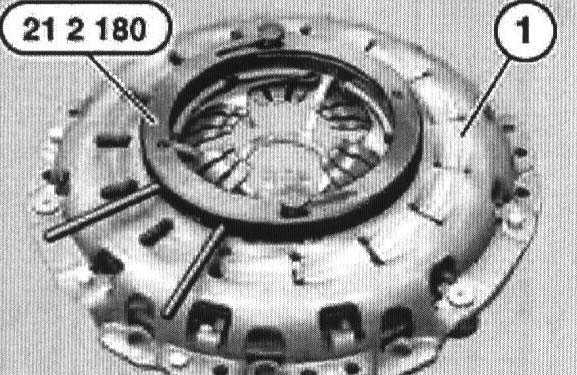 Withdraw special tool 21 2 141 or 21 2 142 with aid of accompanying screw (1) from clutch plate.