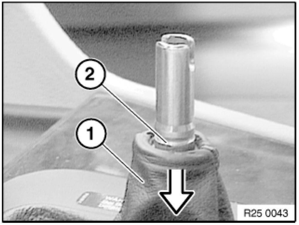Push rubber gaiter (1) down and attach to selector lever (2).