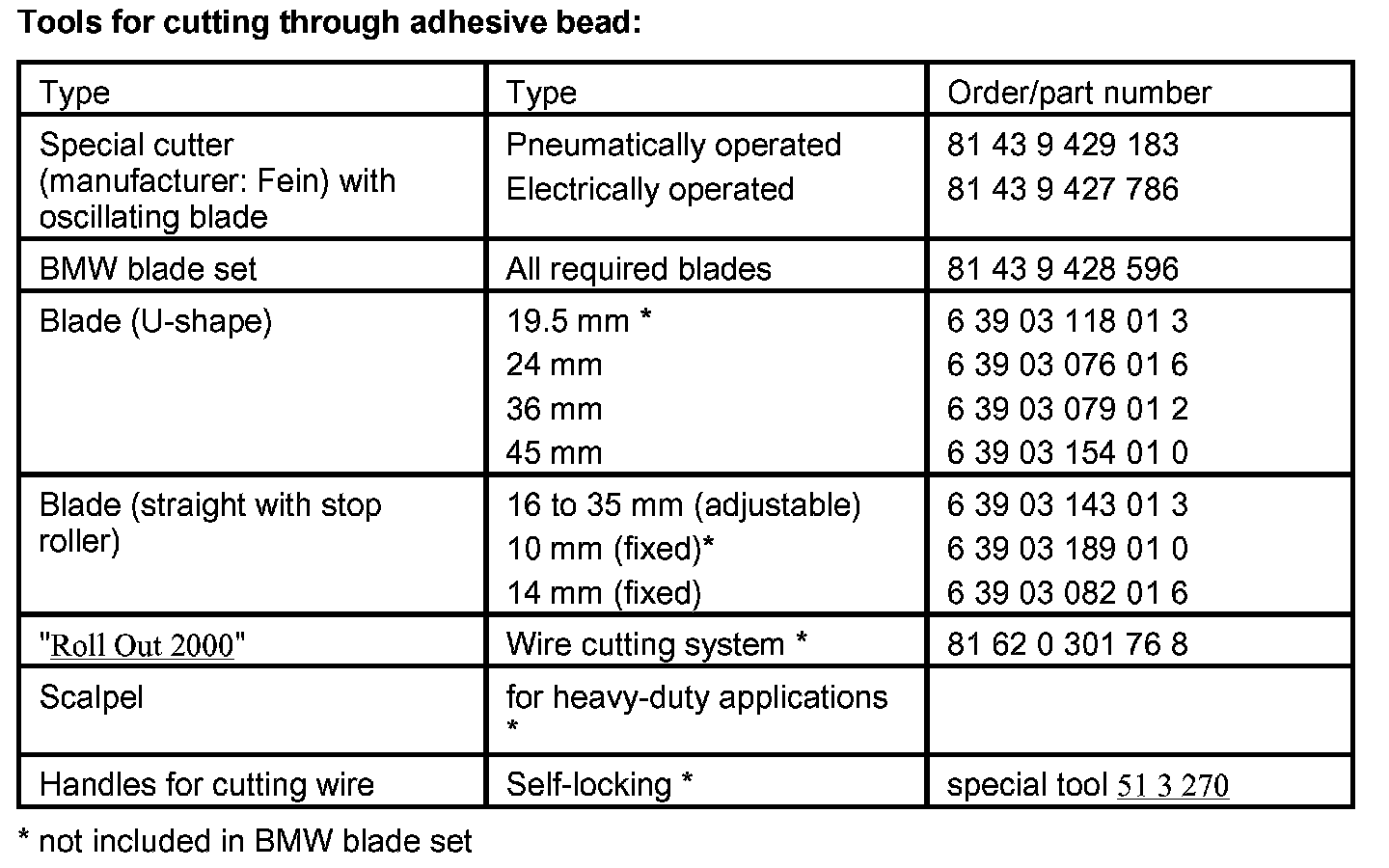 IMPORTANT: As of E63 and E87 it will only be possible to remove the rear window with the "Roll Out 2000".